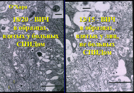 Не нужно быть ученым или специалистом по ВИЧ, чтобы понять, что, независимо от того, что представлено на снимках, ничего очищенного на них нет. В очищенной структуре все объекты выглядят одинаково. Например, представьте себе ящик яблок. На самом деле авторы этой работы дали первой части (а) название «Очищенные везикулы из инфицированных клеток H9», а второй части (b) – «активированные мононуклеарные клетки периферической крови». Несмотря на то, что работа посвящена препаратам ВИЧ, авторы не назвали свои снимки «очищенным ВИЧ», потому что не могли этого сделать. Иными словами, после четырнадцати лет исследований сами эксперты в области ВИЧ подтверждают, что такой вещи, как очищенный ВИЧ, не существует.